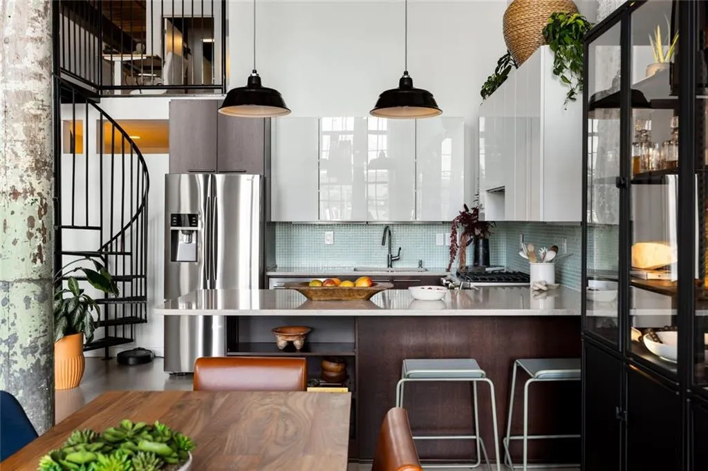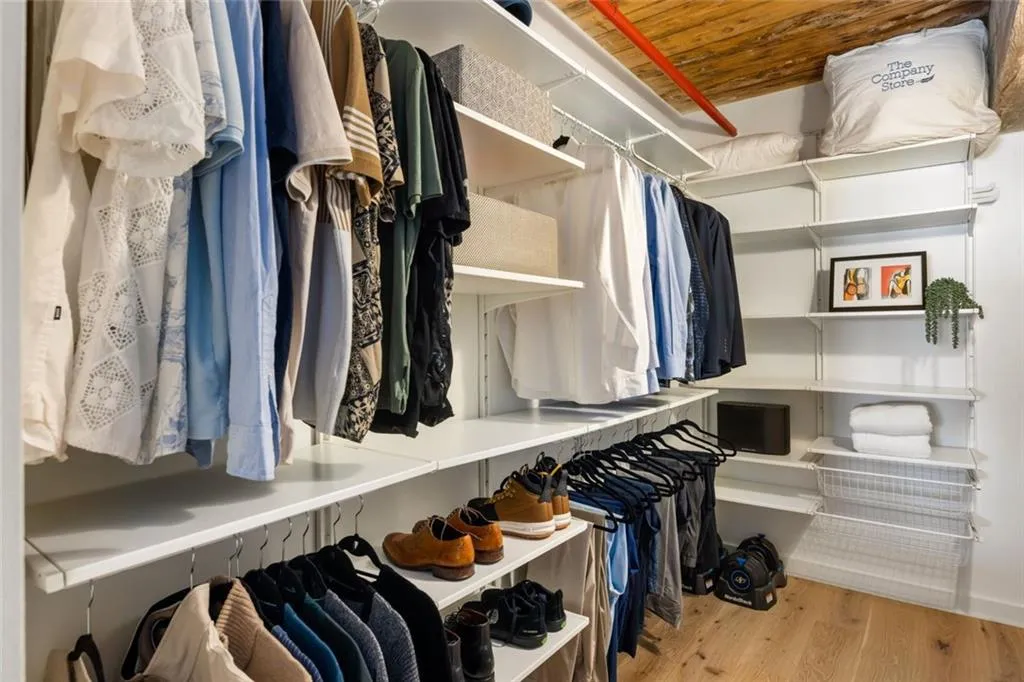 The Stacks are hot, and this loft is the reason why. Live in history, entertain in style. Super cool authentic 2-bed, 2-bath, supersized loft home at Atlanta’s iconic Stacks at Fulton Cotton Mill. Soaring 18.5-foot ceilings, exposed brick, polished concrete floors, and 14-foot factory-style windows flood the space with natural light and frame sweeping views of Atlanta.