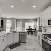 - Kitchen Features: Cabinets White, Eat-in Kitchen, Kitchen Island, Pantry, Solid Surface Counters, View to Family Room