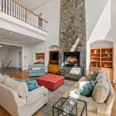 Upstairs you’ll find the spacious primary suite with dramatic vaulted ceiling, wall of windows, gas fireplace, spa-like bath, dressing area, large walk-in closet and its own private deck. Four additional bedrooms (all ensuite), teen space, music room with second deck and laundry are also located on this level. On the top level you’ll find a versatile loft space with full bath, sun-loft with fireplace and city view deck with monument views.