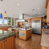 An entertainer’s dream, the main level boasts an open, flowing floor plan and offers a wall of windows overlooking the expansive deck with dramatic city views. The kitchen boasts commercial-grade appliances (perfect for hosting large parties) dual islands, extensive storage and a walk-in pantry. The sun-filled family room has a two-story stone wood-burning fireplace. Just off the kitchen is a comfortable office featuring a two-sided gas fireplace shared with the wood paneled library.