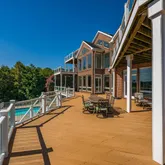 The walk-out lower level has a large recreation room, home gym area, theater, hobby room, climate-controlled wine-room and guest suite. The large terrace and deck offer numerous seating and dining areas and the beautiful heated pool.