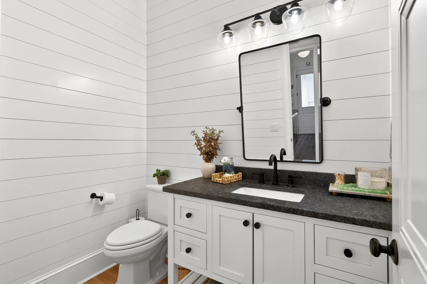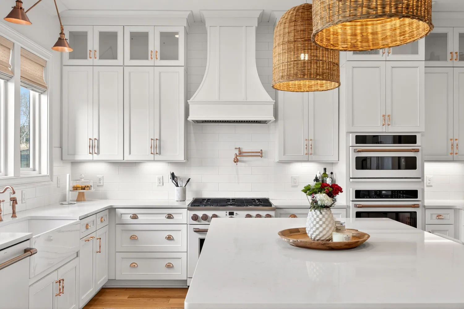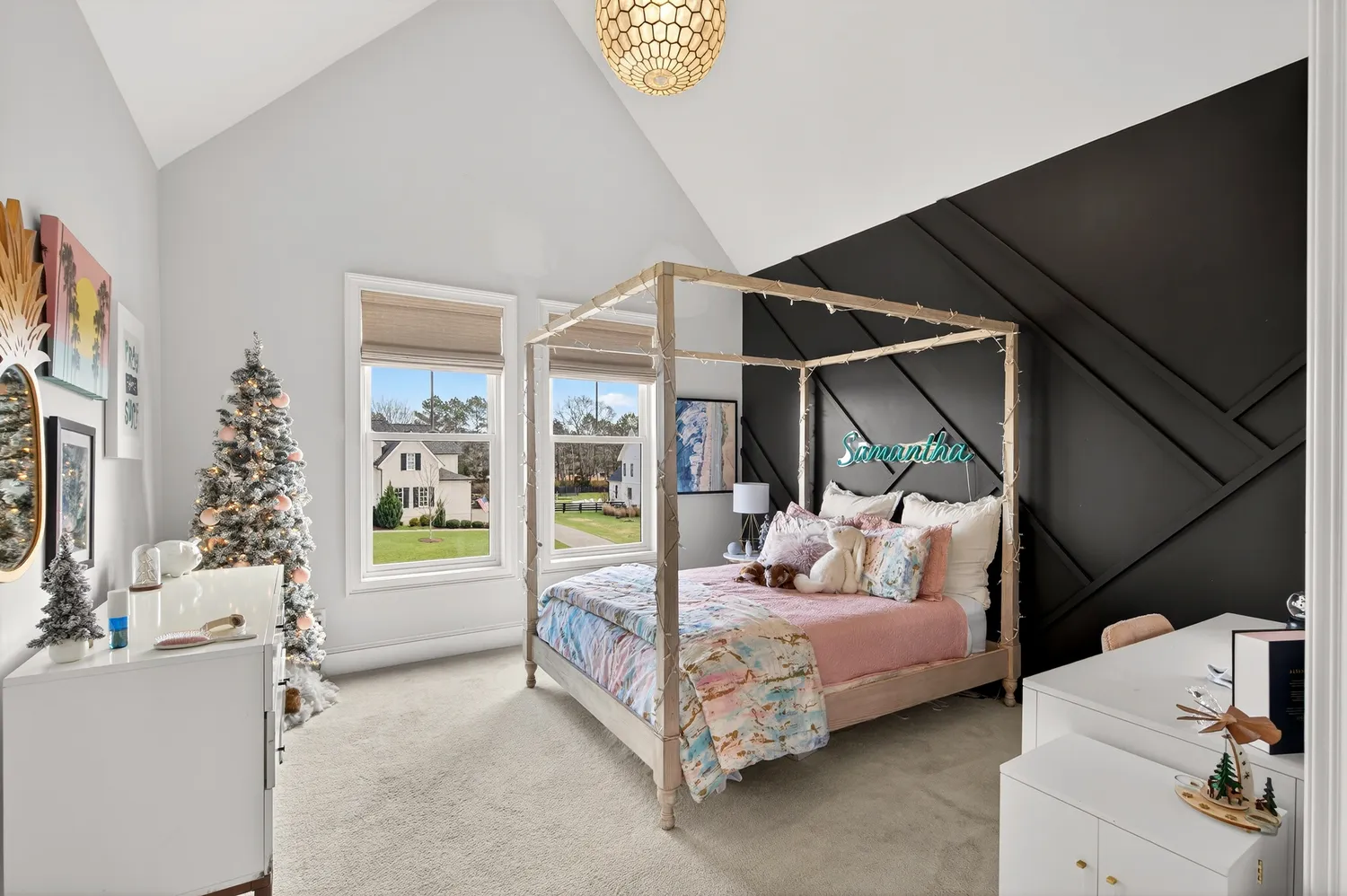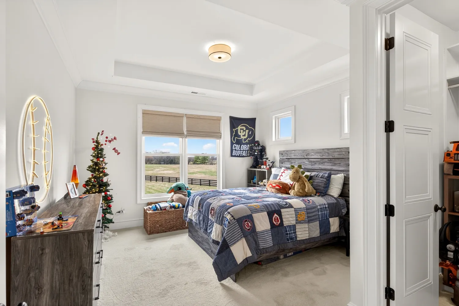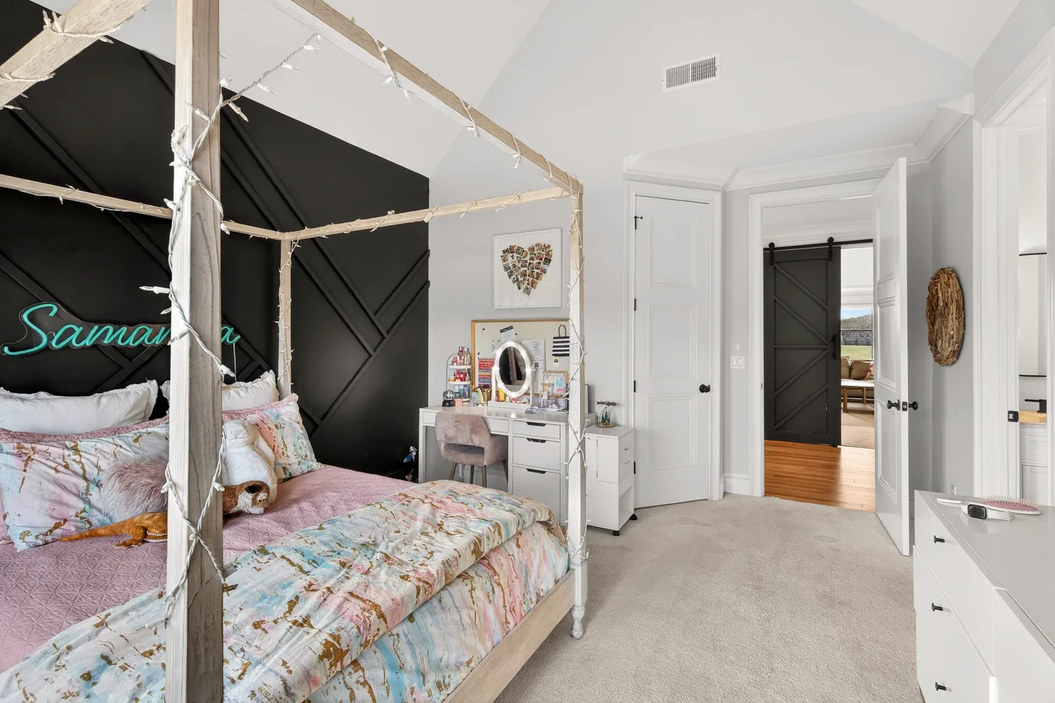 Situated on over an acre in the quiet Swansons Ridge cul-de-sac community, the home features peaceful pastoral views and refined architectural details throughout. A welcoming front porch opens to a light-filled foyer with wide-plank hardwood floors and a striking staircase. A private home office with custom built-ins and accent walls provides an ideal work-from-home space.