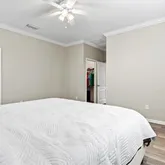 - Interior Features: Ceiling Fan(s), Crown Molding, In Wall Pest System, Kitchen/Family Room Combo, Living Room/Dining Room Combo, Open Floorplan, Primary Bedroom Main Floor, Split Bedroom, Stone Counters, Walk-In Closet(s), Window Treatments