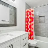 - Room Bathroom Features: Shower in Tub, Exhaust fan(s), Main Floor Full Bath, Quartz Counters, Remodeled, Vanity area