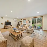 Inside, the layout is smart and inviting. The first-floor primary suite features a marble-clad bath with a Jacuzzi tub,...Set along a quiet, picturesque dirt road, this private escape delivers the kind of peace you didn’t know you needed—until now. A wide, grassy yard flows to a meandering stream, while a heated saltwater pool turns every day into a vacation. Whether you're seeking a full-time sanctuary or a weekend retreat, this home strikes the perfect balance between comfort, privacy, and style.