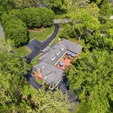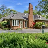 This home is a unique architectural delight in the fabulous Forest Green neighborhood. Enter from Old Warson Road.