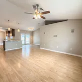 - Interior Features: Ceiling Fan(s), Eating Space In Kitchen, Kitchen/Family Room Combo, Solid Wood Cabinets, Split Bedroom, Thermostat