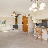 - Interior Features: Ceiling Fan(s), Counters-Solid Srfc, Kit/Din Combo, Laminate Counters, Liv/Din Combo, Live on One Level, Master Downstairs, Other, See Remarks, Wash/Dry Connection