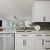 The open concept kitchen has been thoughtfully redone and is a true focal point of the home, featuring new countertops, a modern backsplash, updated finishes, and a clean, cohesive look that feels far more custom than typical homes in this price range.