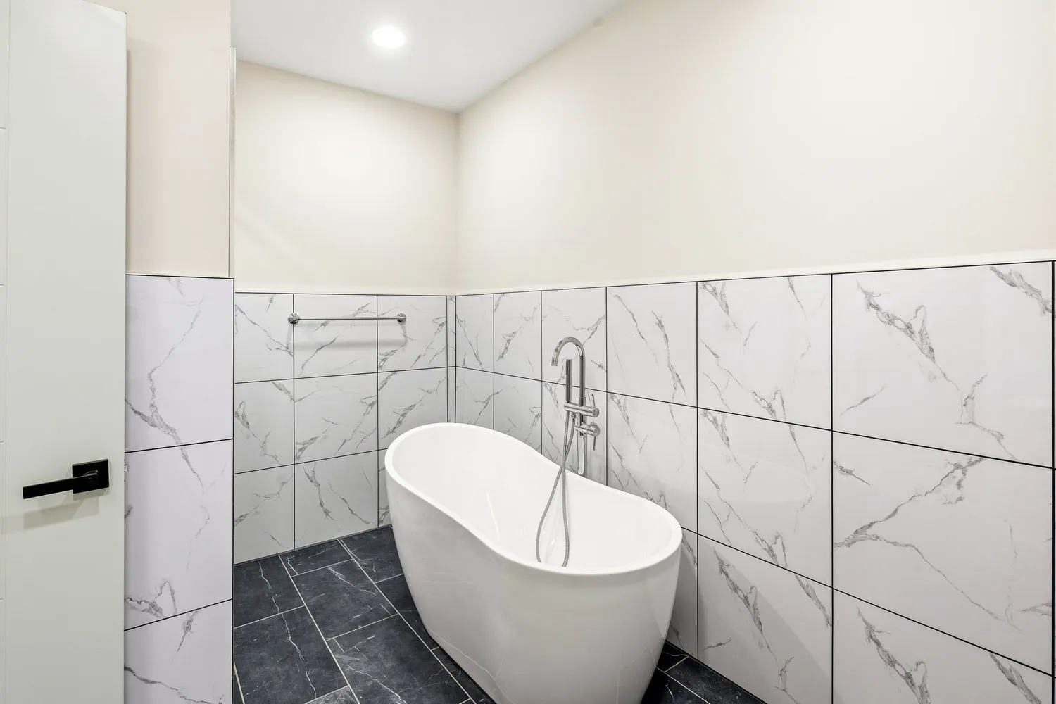 The second floor offers two generously sized bedrooms, each outfitted with massive walk-in closets to meet all your storage needs. A beautifully designed hall bathroom on this level features both a soaking tub and a separate shower stall, blending style and practicality for family or guests.
