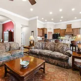 - Interior Features: Breakfast Bar, Tray Ceilings, Ceiling Fan(s), Crown Molding, Separate Formal Dining Room, Eat In Kitchen, Granite Counters, High Ceilings, Kitchen Island, Multiple Dining Areas, Main Level Master, Multiple Closets, No Interior Steps, Open Floorplan, Pantry, Storage, Soaking Tub, Study, Walk In Closets