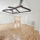 - Interior Features: Attic Access, High Speed Internet, Ceiling 9'+, Beamed Ceilings, Ceiling Fan(s), Tray Ceiling(s), Inside Laundry