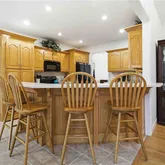 - Kitchen Features: Breakfast Bar, Breakfast Room, Cabinets Stain, Eat-in Kitchen, Solid Surface Counters, View to Family Room