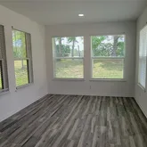 the open living room and dinette. Dinette has same wood style tile, and large windows on 3 sides to embrace the outside. There is a separate