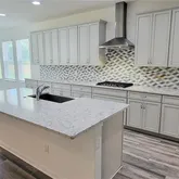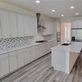 floor is gorgeous wood style tile from the front door, through the kitchen to the back. The Gourmet kitchen is very large with TONS of tall 42 inch