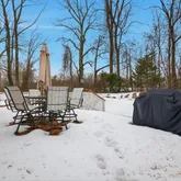 Circular driveway offers ample parking. Rare combination of privacy, usable acreage, and single-level living in a convenient Crofton location.