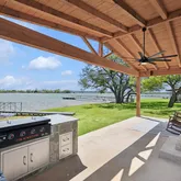 - Exterior Features: Attached Grill, Built-in Barbecue, Covered Patio/Porch, Dock, Rain Gutters, Outdoor Grill, Outdoor Kitchen, Outdoor Living Center, Other