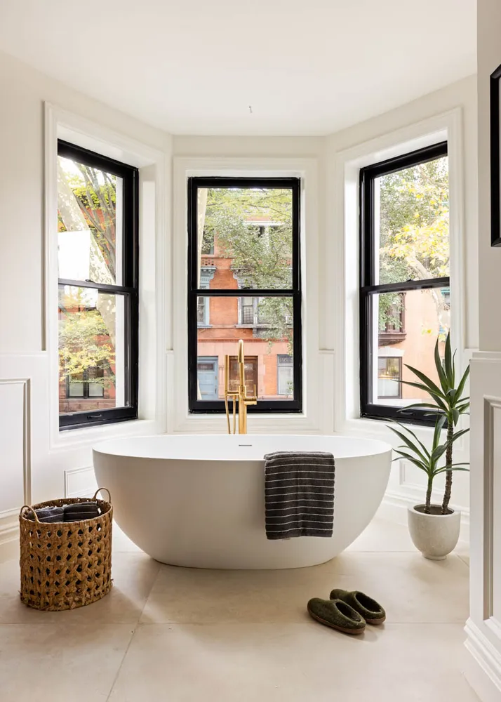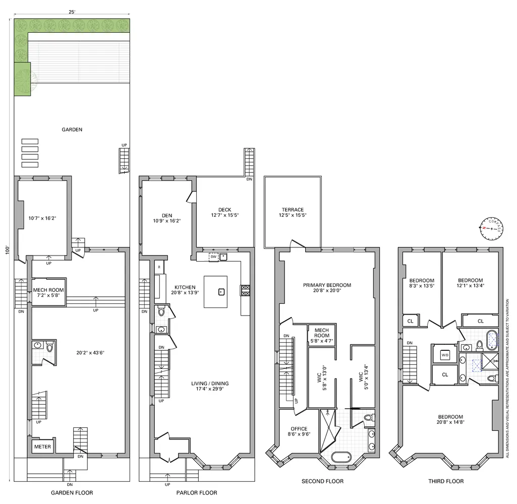 The parlor level opens into a spacious, sun-filled living and dining area with soaring 10.5’ ceilings...Welcome to 175 St. James Place — a stately three-story, single-family townhouse that beautifully blends classic elegance with modern design and everyday livability. This grand 22-foot-wide home offers four bedrooms, a home office, three full baths, and two half baths over 4,500 square feet of meticulously designed interiors and multiple private outdoor spaces, including a garden, deck, and terrace.