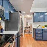 The updated kitchen is finished with quartz countertops, professionally painted navy cabinetry, brand-new stainless steel appliances, modern hardware, and upgraded lighting. Both bathrooms have been refreshed with sage cabinetry, new counters, updated fixtures, and contemporary lighting, creating a cohesive and modern design throughout the home. Additional improvements include updated electrical fixtures and thoughtful finishing touches, making this residence truly turnkey.
