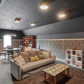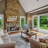 - Fireplace Features: Stone, Wood Burning