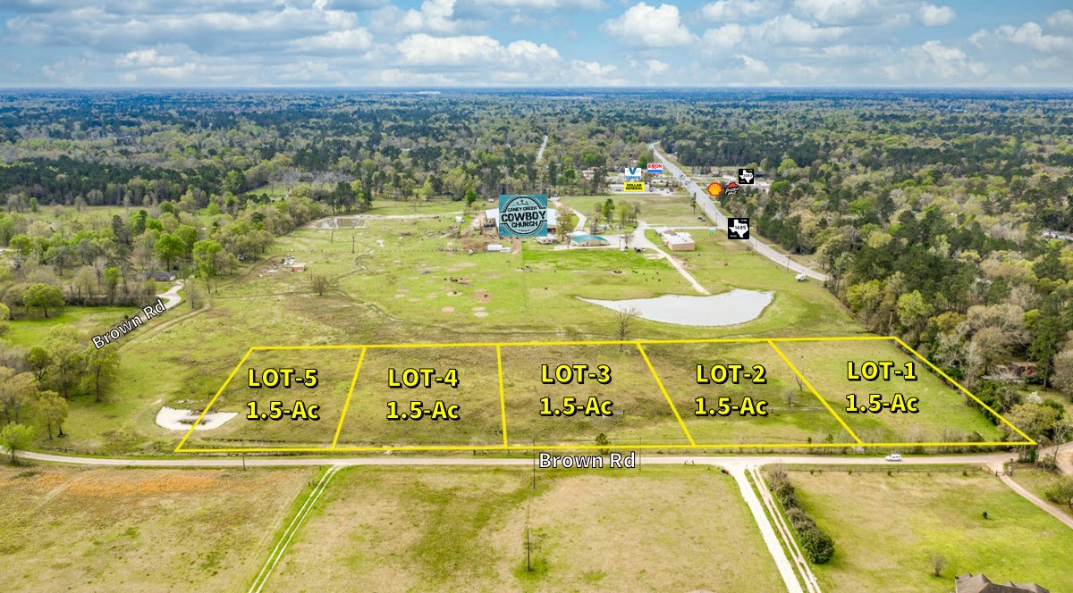 - Directions: Take 59 N to FM 1485, Take a Left onto FM 1485 and continue to Brown Rd. Lots will be on your Right.