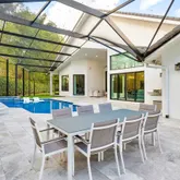 - Exterior Features: Auto Sprinkler, Custom Lighting, Fruit Tree(s), Screened Patio, Summer Kitchen