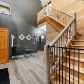 - Interior Features: Breakfast Bar, Cathedral Ceilings, Dry Bar, Entrance Foyer, Eat In Kitchen, Separate Formal Living Room, Guest Accommodations, Jetted Tub, Kitchen Family Room Combo, Pantry, Pull Down Attic Stairs, Sliding Glass Doors, Solid Surface Counters, Walk In Pantry, Bar, Natural Woodwork, Bath In Primary Bedroom, Programmable Thermostat