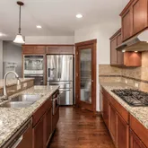 - Appliances: Range, Gas Range, Double Oven, Dishwasher, Refrigerator, Disposal, Microwave, Hard Surface Counters