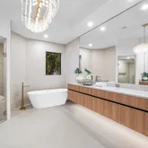 sophistication, while the custom breakfast area invites relaxed, everyday dining. The expansive living room is adorned with custom window treatments, oversized tile flooring, and an elegant yet welcoming ambiance. The formal dining area impresses with custom white oak built-ins and striking wine cork wallpaper, creating a truly memorable entertaining space. The primary suite is a private sanctuary, featuring custom lighting, a bespoke white oak bed frame and headboard, dual custom closets, and luxurious his-and-hers bathrooms with dual vanities and a stunning freestanding soaking tub. Throughout the home, distinctive designer light fixtures elevate every space, complemented by nearly $200,000 in custom white oak millwork and designer wallpaper finishes. The family room offers warmth and style with an electric faux fireplace, while a dramatic chandelier suspended from the soaring ceiling creates a grand first impression upon entry. The downstairs office is outfitted with custom white oak cabinetry and elegant drapery, providing a refined and productive workspace. Step outside to a private oasis where over $150,000 has been invested in exquisite landscaping and hardscaping. The outdoor space features a luxurious pool with new equipment and heater, a custom summer kitchen, and serene lake views perfect for relaxing or entertaining year-round. Additional highlights include impact windows, custom hidden entry doors, designer wallpaper throughout, and a striking 14-foot custom staircase feature that serves as a true architectural statement. This is more than a home it's a lifestyle. Perfectly positioned in The Oaks, this one-of-a-kind estate offers refined luxury, tranquility, and timeless sophistication. Don't miss the opportunity to own one of Boca Raton's most captivating residences where elegance meets serenity.