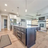Step outside to enjoy the screened-in composite...Welcome home to this reverse 1.5-story, 3-car garage beauty packed with value and thoughtful updates. The main level offers a spacious, light-filled kitchen with abundant cabinetry, a comfortable dining area ideal for everyday meals, and a cozy great room anchored by a fireplace with custom built-in shelving and accent lighting. The primary suite features two closets, while a second bedroom on the main level provides flexibility for guests or a home office.