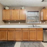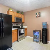 - Kitchen Features: Cabinets Stain, Laminate Counters, View to Family Room