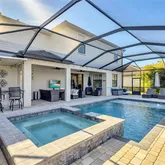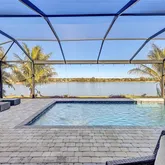 - Pool Features: Gunite, Heated, In Ground, Infinity, Lighting, Salt Water, Screen Enclosure