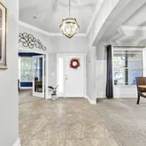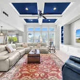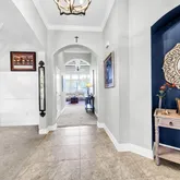 Step inside and discover a thoughtfully designed floor plan featuring four spacious bedrooms plus a private office -- ideal for working or learning from home. The open-concept living area impresses with soaring 12-foot ceilings, elegant crown molding, and an effortless flow perfect for both entertaining and daily living. The chef's kitchen is a true centerpiece, combining beauty and functionality with granite countertops, stainless steel styled appliances, a gas cooktop with built-in wall oven, butler's pantry, and breakfast nook that opens seamlessly to the screened lanai, the perfect place to unwind while enjoying peaceful water views.