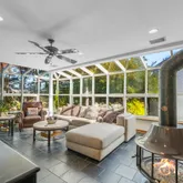 - Exterior: Deck, Shed, Outbuilding, Balcony, Swimming, Storage, Stained Glass, Patio, Gazebo, Fence