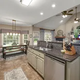 - Interior Features: Bookcases, Breakfast Bar, Ceiling Fan(s), Central Vacuum, Commode Room, Crown Molding, Double Vanity, Eat-in Kitchen, Entrance Foyer, Granite Counters, High Ceilings, Open Floorplan, Pantry, Primary Downstairs, Tray Ceiling(s), Walk-In Closet(s)