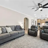 - Interior Features: Arched Doorways, Built-in Features, Ceiling Fan(s), Dead Bolt(s), Kitchen Island, Pantry, Solid Surface Counter