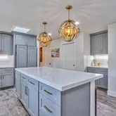 - Kitchen: Cooktop - Gas, Countertop - Quartz, Garbage Disposal, Ice Maker, Island, Oven - Double, Oven Range - Gas, Pantry, Refrigerator, Skylight