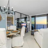 Experience the epitome of beachfront living from your private balcony and immerse yourself in unparalleled views of world-famous white sand beaches, perfectly positioned at eye level with breathtaking sunsets and Marco Island's iconic palm trees. As you look down over the balcony, a winding path leads you through a pristine landscaped courtyard right to sugary white sand beaches. This is what people dream of, and its all in your backyard. Inside, the home bathes in natural light, showcasing the elegance of chandeliers and designer furnishings. Recently remodeled, including a modern kitchen, bathrooms, walk in shower in leu of tub in the master, and a freshly painted interior.
