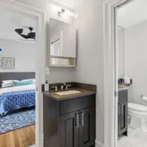 The primary bedroom is a true retreat! It's large enough for a king size bed, has high ceilings, picture molding and a spacious walk in closet. The bathroom has dual sinks, a marble glass shower and a water closet for convenience. The unit includes an in-unit washer/dryer and it's own storage space. Pets are allowed.