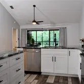- Interior Features: Ceiling Fan(s), Eating Space In Kitchen, High Ceilings, Kitchen/Family Room Combo, Living Room/Dining Room Combo, Open Floorplan, Solid Wood Cabinets, Split Bedroom, Stone Counters, Thermostat, Vaulted Ceiling(s), Walk-In Closet(s)
