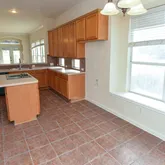 - Room Description: You will love the large kitchen and the warm - stained cabinets & high ceilings. This room flows beautifully into the large family room. The chef is never alone! All the wallpaper is GONE !! Electric oven w/ microwave built-in on top.