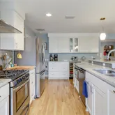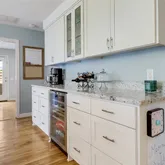 - Room Description: Beautifully updated kitchen with marble counters and backsplash opened up to the family areas and overlooking the backyard. Side butler's pantry has built in bar fridge and plenty of storage.