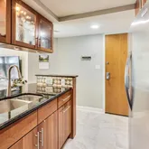 The sun-filled living room welcomes you home with a wall of windows and a wood-burning fireplace for those cozy winter evenings. The open layout seamlessly connects the living area with the kitchen which features sleek granite counters, ample cabinet space, and stainless steel appliances making it a dream for any cooking enthusiast, and you can enjoy those meals al fresco on the sizable private patio!