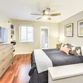 The sun-filled living room welcomes you home with a wall of windows and a wood-burning fireplace for those cozy winter evenings. The open layout seamlessly connects the living area with the kitchen which features sleek granite counters, ample cabinet space, and stainless steel appliances making it a dream for any cooking enthusiast, and you can enjoy those meals al fresco on the sizable private patio!
