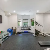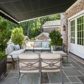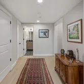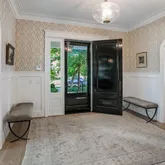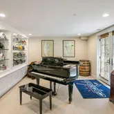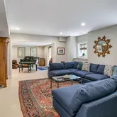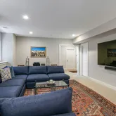 The lower level enjoys equally high ceilings and finish detail. A large, secondary recreation space is flooded with natural light and walks out to the rear garden through French doors. The exercise space is also on grade and generously-scaled. The fourth bedroom with bath and laundry room complete the lower level. The oversized two car garage, accessed via mudroom with storage make for easy daily living. Outdoors a private terrace with automatic awning and built in gas grill overlooks mature plantings of the rear garden.