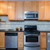 - Appliances: Dishwasher, Disposal, Washer - Front Loading, Refrigerator, Range Hood, Oven/Range - Gas, Stove, Microwave, Intercom, Dryer - Front Loading, Dryer, Washer