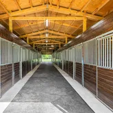 - Equestrian Features: Boarding Facilities, Center Aisle, Grooms Quarters, Lounge, Paddocks, Riding Trail, Stable(s), Water and Electric