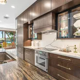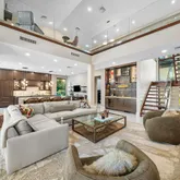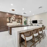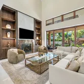 Meticulously reimagined in 2024-2025, the property features a state-of-the-art designer kitchen boasting dual islands, Sub-Zero and Thermador appliances, a 44-inch Galley sink, and bespoke designer lighting that perfectly complements the home's architectural elegance. The first-floor serves as a private retreat, complete with a custom fireplace, a built-in wall unit, and floor-to-ceiling windows framing tranquil river vistas.