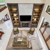 Meticulously reimagined in 2024-2025, the property features a state-of-the-art designer kitchen boasting dual islands, Sub-Zero and Thermador appliances, a 44-inch Galley sink, and bespoke designer lighting that perfectly complements the home's architectural elegance. The first-floor serves as a private retreat, complete with a custom fireplace, a built-in wall unit, and floor-to-ceiling windows framing tranquil river vistas.
