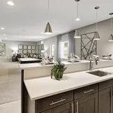 then show them to their rooms with a full bath upon entry! Walk back to the spacious great room, complete with a gourmet kitchen with a large island, quartz countertops, stainless steel appliances, a pantry, and a fireplace before heading back to your primary bedroom, complete with a luxurious bath with a large shower, soaking...Come see what living on a golf course in a one level home is all about in an Arlington floorplan by Richmond American Homes! Greet your guests on a welcoming covered porch,